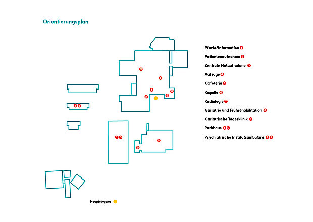 Zur Orientierung finden Sie hier eine Übersicht der patientenrelevanten Anlaufstellen im Erdgeschoss des EvK.